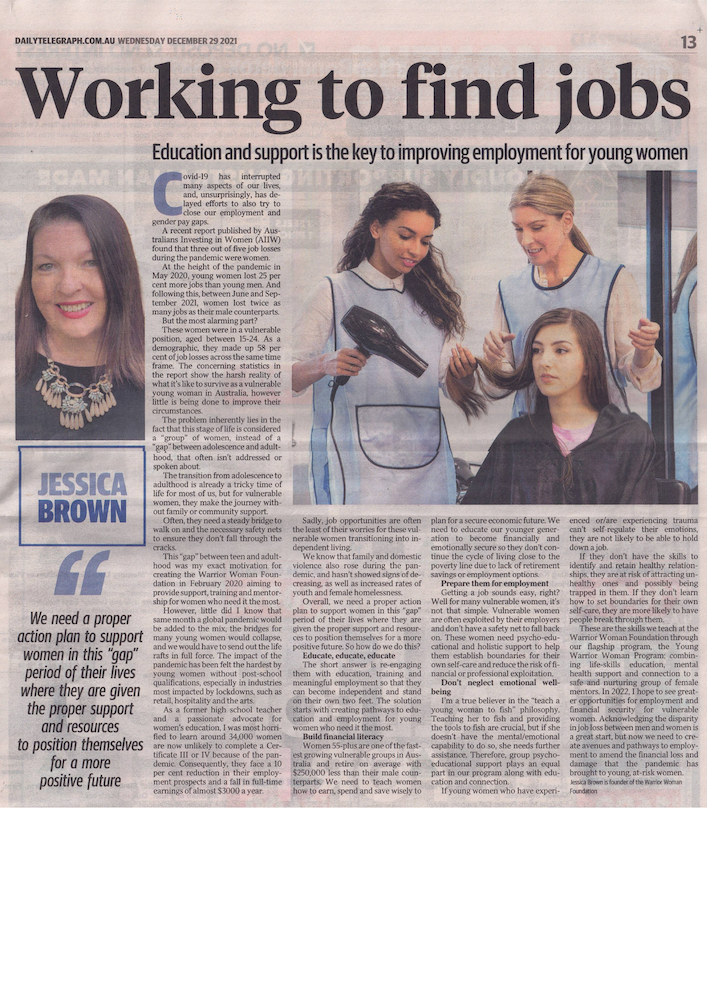 The Warrior Woman Foundation has been making waves in the media as a leading voice in empowering young Australian women. With our mission to build resilience, financial independence, and leadership among vulnerable young women, we are proud to have garnered national recognition. Our programs and initiatives have been featured in various publications and media platforms, highlighting the incredible work we do to uplift, support, and inspire the next generation of strong, confident women. Check out our latest press features, interviews, and stories that showcase our journey and the powerful impact we’re making in communities across Australia!